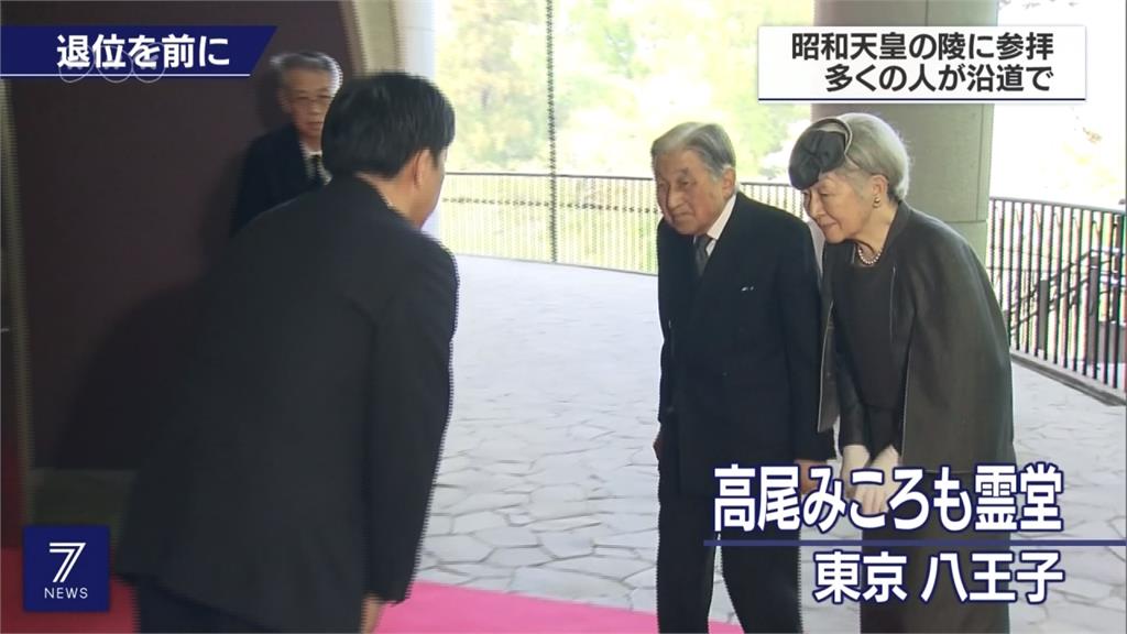 長達31年的平成時代,即將在4月30日走入歷史。天皇夫婦在23日上午,前往上一任天皇,也就是明仁父親─昭和天皇的下葬地點,位於東京八王子市的「武藏野陵」參拜。沿途都有大批民眾夾道歡迎。附近學校的小朋友甚至爬上遊樂器材,就為了看他們一眼。