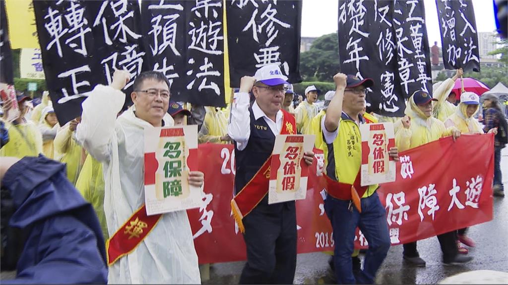 五一勞動節勞工不休息,6000多人冒著大雨走上街頭抗議,第一站先到勞動部。
