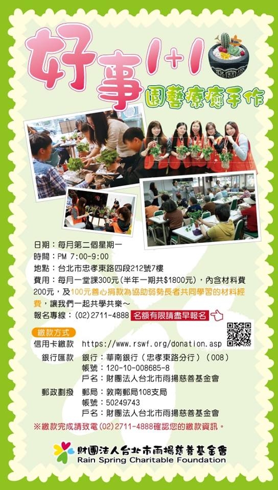 本會推出《好事1+1。園藝療癒手作》