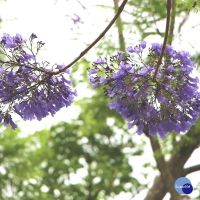 「萬紫千紅總是春」,春天是尋花、賞花的好時節,各種花木隨著春風搖擺,色彩繽紛,其中一排高大藍花楹,樹上佈滿著藍紫色的花朵,在陽光的照耀下,盡情展露其嬌顏,與如洗的藍天相輝映,令人為之一亮。