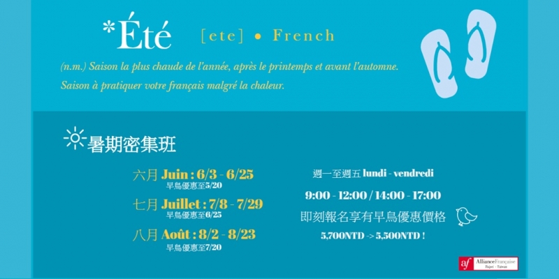 af台灣法國文化協會「2019暑期密集班」熱烈報名中!