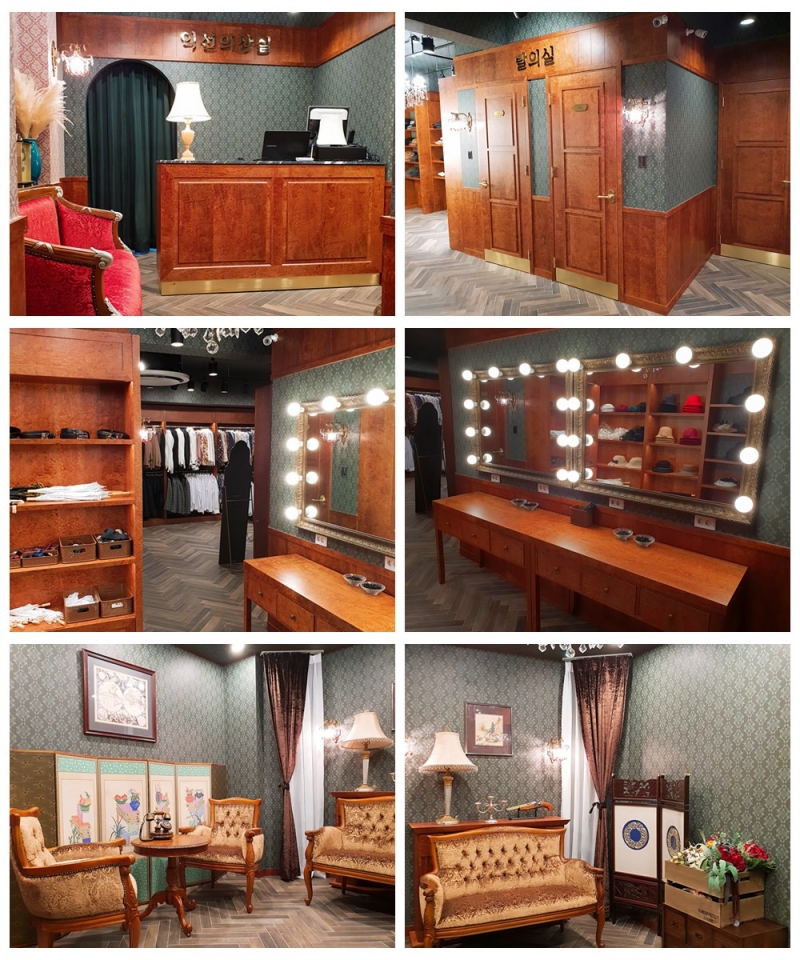 1. 租借:須提交1人以上的護照;每人須繳納15,000 won押金。歸還服裝及配飾時將歸還
