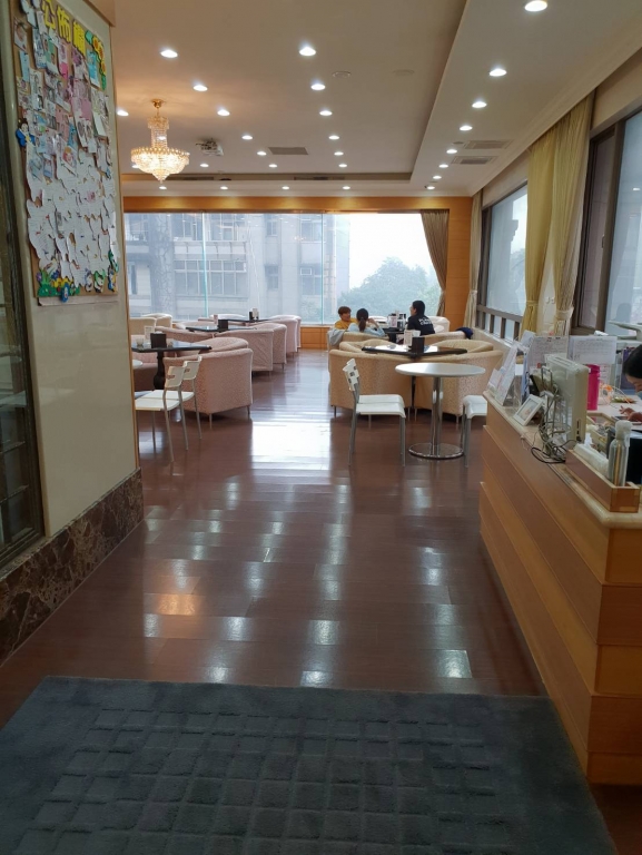 交誼廳採光好,有舒適的沙發讓人做,還有養生茶及雜誌。
