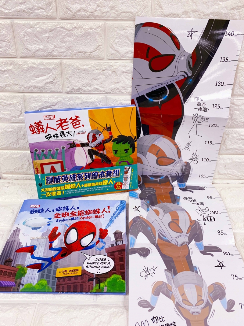 三本繪本5月31日齊上市,出版社特別跟官方申請套書加碼,即日起只要購買《蜘蛛人,蜘蛛人,全蜘全能蜘蛛人!》與《蟻人老爸,快快長大!》珍藏套書,即可獲得一份「超萌蟻人身高尺」,把蟻人漸變軌跡變成超有創意的身高量尺,是外面買不到的夢幻贈品。本次三本書加起來近乎集結了漫威電影宇宙的所有人氣角色,身為漫威粉的你怎能不收集?趁著銳不可當的電影熱潮把繪本也刷一波,Avengers Assemble!