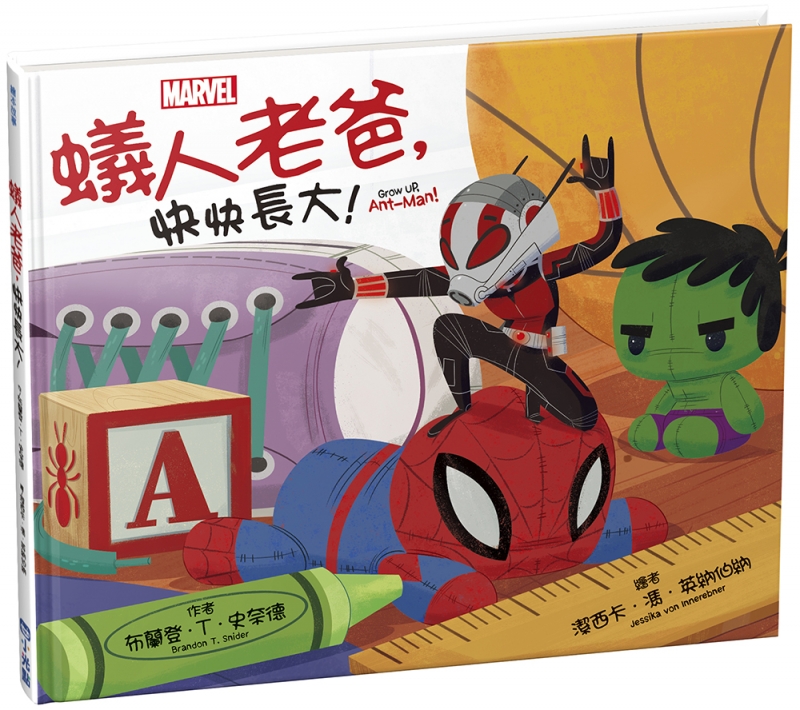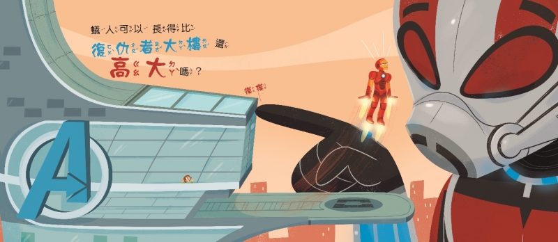 《蟻人老爸,快快長大!》從蟻人女兒凱西的視角出發,介紹自己可以變大變小的超級英雄老爸。電影裡只能一窺數秒的放大絕招在書裡讓你看個夠,無論是小到比原子還小,還是大到比高樓大廈還大,在女兒面前全都辦得到!蟻人爸爸甚至為了凱西把整組超級英雄都請來當彩蛋,藏在書裡的鋼鐵人、索爾、美國隊長、蜘蛛人、浩克、尼克‧福瑞、黃蜂女以及整組的星際異攻隊,你找得出來嗎?