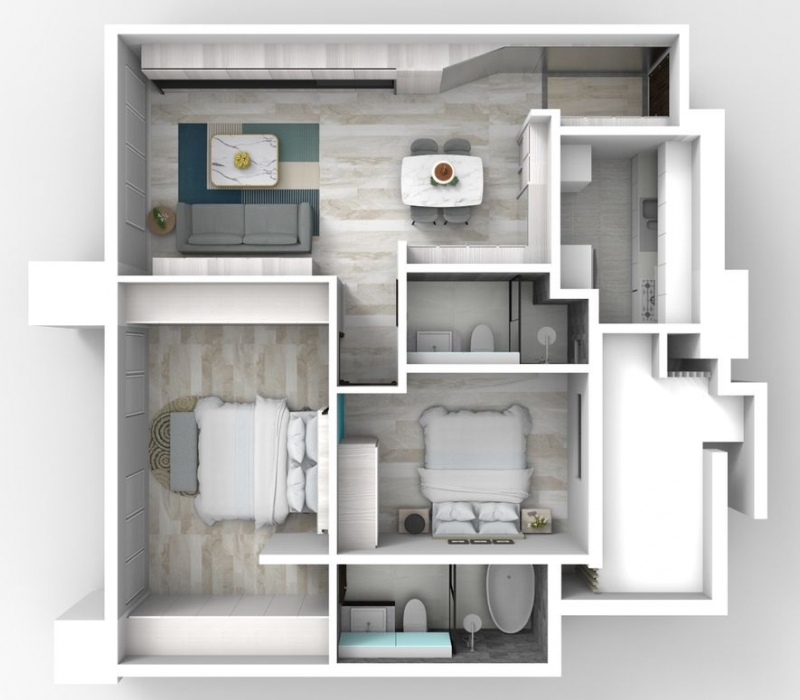 的生活態度,更深入她推敲下的每一分設計細節;用心的陳總監為提供給業主更貼近的想像情境,除了耐心聆聽需求並逐步溝通以外,凡經手案件皆採 3D 繪製平立面及透視圖,發揮快速且精準的繪圖能力——從大範圍的整體格局、空間序列、傢配尺寸、燈光定位點,至細節處的線條比例、材質質感及色彩調性,將形塑空間氛圍的各個角色一次展演到位。