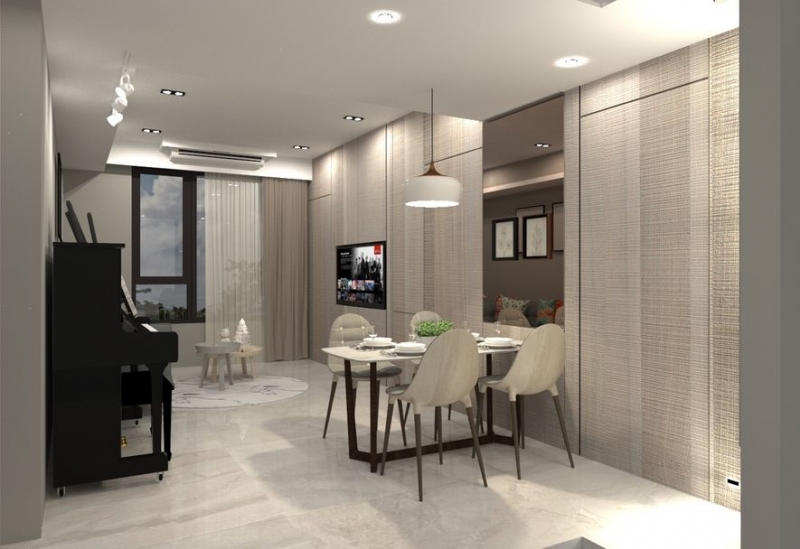 (圖)塘采設計 作品《韶光沁》用餐區3D模擬圖(上)及實景圖(下)。