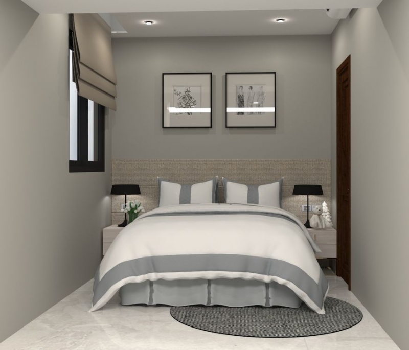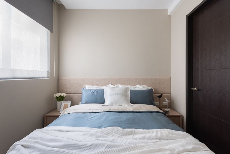 (圖)塘采設計 作品《霽月集》臥室3D模擬圖(上)及實景圖(下)。