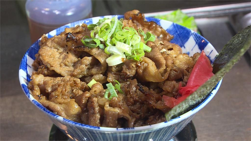 霸氣不能靠嘴說,讓你眼見為憑,老板兩勺白飯襯底才一半碗高,剛烤的大片牛五花,全給了這一碗,還超過表面張力滿出來,紅薑、海苔加蔥花配色,這一碗從路邊攤賣到開店面,份量價格都沒變。