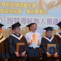 「自己要用的人才自己培養」,嘉義縣吳鳳科技大學與「天珩機械公司」推動「雙軌訓練旗艦計劃」四年展現成果,第一批14位學生今天(10日)完成訓練畢業,同時發表共同研發的最新「智慧導航無人搬運車」。