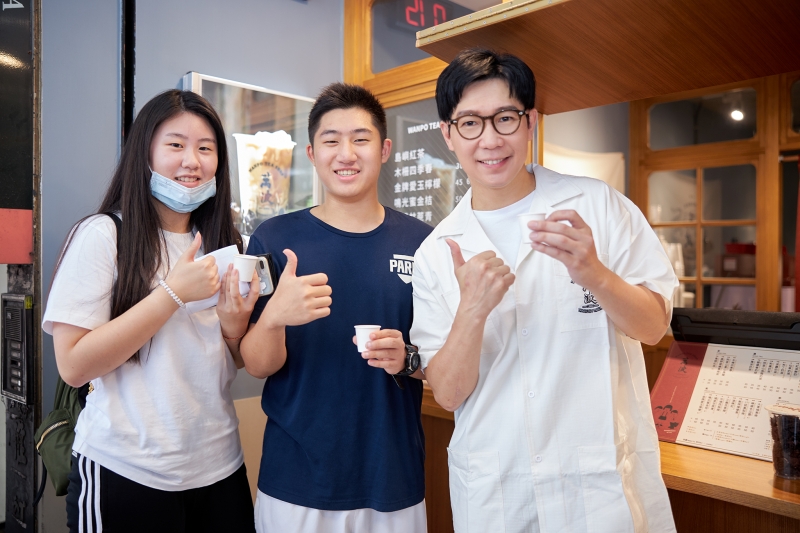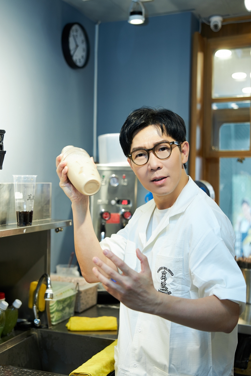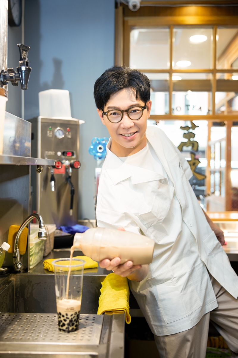 幸好皇天不負苦心人,揮汗如雨的他,提早在指定時間內成功調出一杯「品冠珍珠奶茶特調」,經過萬波老闆試飲鑑定後,都高度肯定「可以來上班了」,通過考驗的他,放下心中大石後,調皮地用單手、反手調出一杯杯珍奶,笑稱:「平常在家頂多就是泡泡奶,或泡一下咖啡,特調珍珠奶茶是初體驗,真的是很緊張,因為從來沒有調過茶飲,感覺滿刺激、新鮮的!」