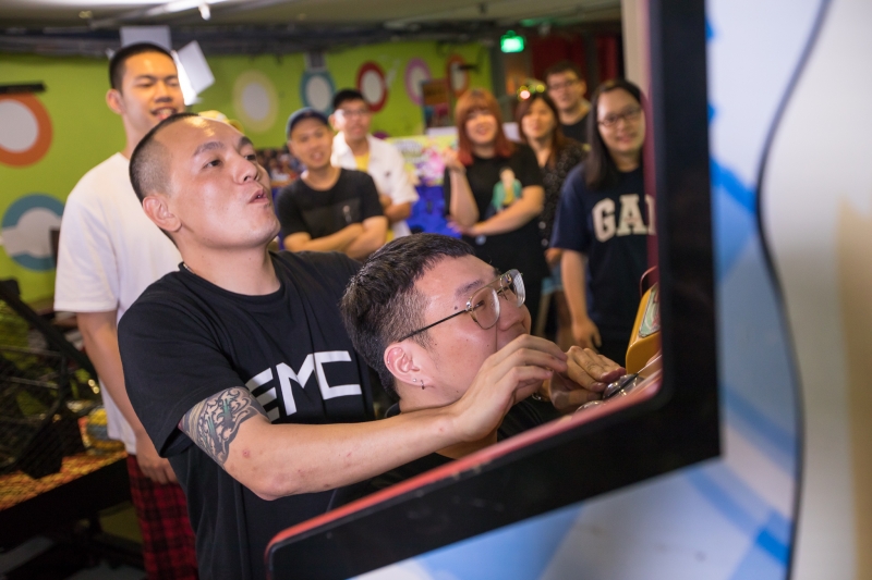 至於冠軍隊粉絲可以得到甚麼特殊獎勵呢!就是跟隊長大玩親密雙貼遊戲,春風在後,粉絲站前面,雙手環繞一起玩攀岩機,惹得男女粉絲都樂得臉紅心跳。此外,在互動時玖壹壹發現竟有粉絲也正好當天生日,他們也很貼心地緊急準備了小蛋糕,在見面會的尾聲一起為壽星粉絲慶生。