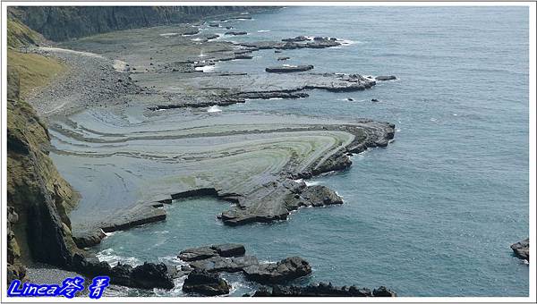 ◎龍埕海蝕平台,龍是2D的,綠色的躺在地上,頭在海中,看出來了嗎?