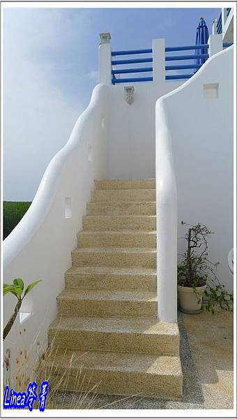 館等等……我呢,趁機跑到路上一間很希臘風的民宿去拍照,