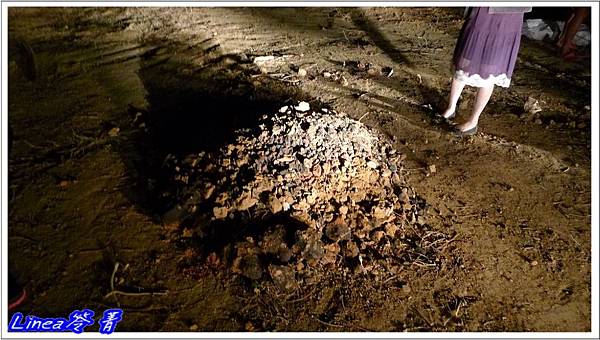 好不容易堆好後,窯也烤紅了,我們把地瓜都扔進