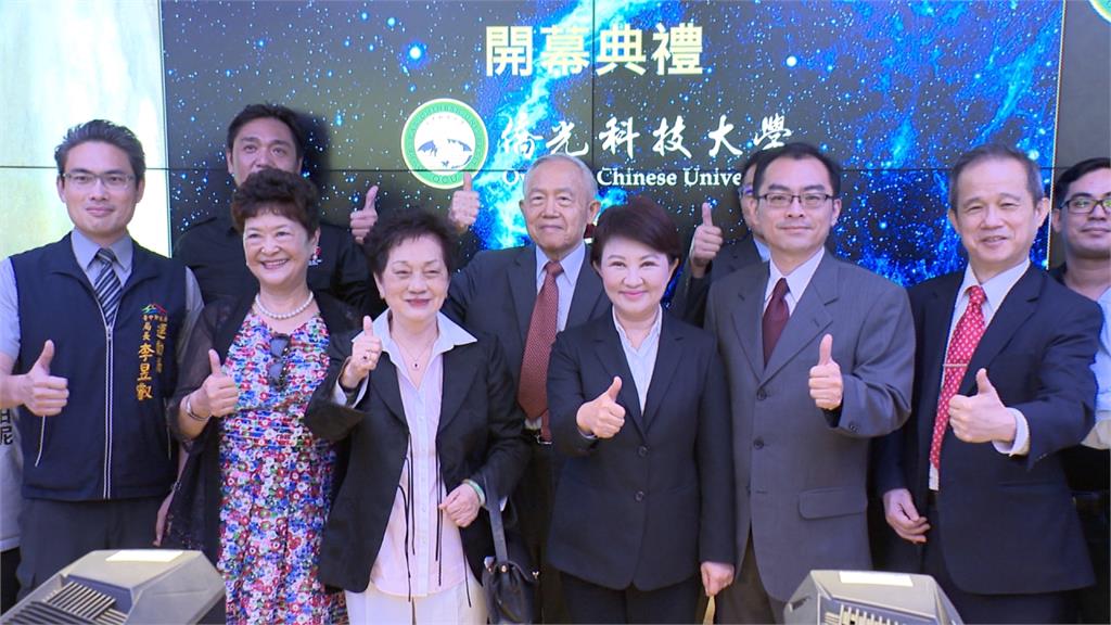 「電競與遊戲產業菁英培訓基地」開幕了,台中市長盧秀燕與僑光科大董事長陳伯濤以及校長楊敏華等人共同揭幕。