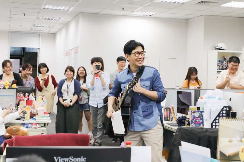 他決定放膽豁出去,直接破梗跟大家相見歡,此時編輯部員工掀起一陣騷動,發出不可思議的驚呼聲,赫然發現原來剛才遞飲料的外送員,居然就是情歌王品冠,趕緊抱以熱烈的掌聲彌補,這個後知後覺的反應也讓品冠爆笑:「沒想到你們這麼冷漠!」大家才紛紛解釋因為品冠口罩沒拿下來,雖有合理懷疑,但覺得可能性不大,所以不敢貿然上前搭談,還有紛絲員工捉弄他因為「上半部太像冠佑」,讓他聽聞後哭笑不得。