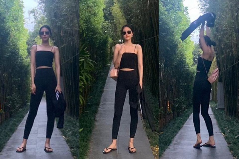 雖然一樣是細肩帶背心,但是娜恩跟雪炫卻穿出不一樣的感覺!利用同色系的ALL BLACK搭配運動風格的單品,穿出既休閒又性感的街頭感。