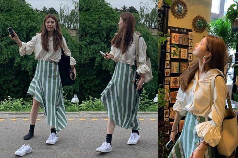 秀智最近一連在SNS上分享超多到北歐度假的旅行照,可以看到她最常穿的私服就是長裙!不管是一般的長裙、或是吊帶裙都可以常常看到,不僅修飾身材之外也非常百搭實穿、一套上就有重點!