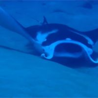 湛藍的海洋裡,突然出現一隻超大型魟魚,從眼前游過,腹部還跟了兩三隻小鯊魚,畫面奇特又壯觀,潛水客立刻拿起相機猛按快門,捕捉這難得的景象。
