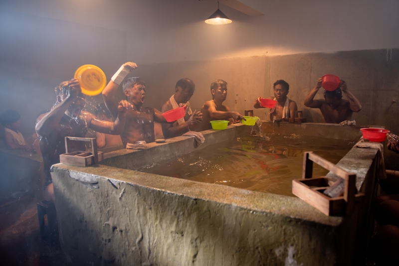礦工收工後的沖澡,是一天中最快活的時光,但對《苦力》演員來說,卻是一大煎熬。劇中的礦工澡堂戲,拍攝時氣溫僅11度,但取景的澡堂沒有熱水,敬業的演員們沖著冷水,演出開心療癒的狀態,再搭配蚊香營造出熱氣瀰漫的樣子,蔡昌憲更要一邊淋冷水一邊歡樂高歌,他坦言:「確實不好拍啊,但看到畫面覺得一切都值得。」傅子純回想起澡堂戲,仍不禁打冷顫,「太冷了,印象很深刻,劇組貼心的幫我們煮熱水增溫,但是水池實在太大,冷水沖下去時,超厭世的。」
