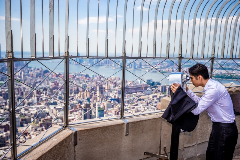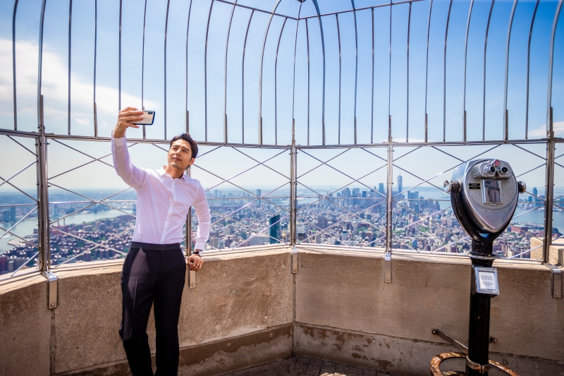 果然,二度造訪,天氣晴空萬里,宇威站上觀景台鳥瞰紐約,忍不住發出驚呼聲,他笑說,上次來,處於熬夜狀態,一拍完還要趕飛機回北京,整個人累到極點,這次終於能優閒地參觀,還使用了從小記憶中,一定要投幣才能使用的望遠鏡,他調皮說,「這次因為受邀,有特權,不用投錢耶。」個性開朗,凡事正能量的他,果然很容易滿足。而許多中外遊客也馬上注意到這個帥氣的小哥並認出他,紛紛要求拍照,讓帝國大廈帶領人員也直呼人氣果然厲害。