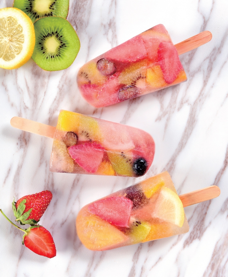 - 鮮果需填滿及貼附冰棒模才能防止滑落。