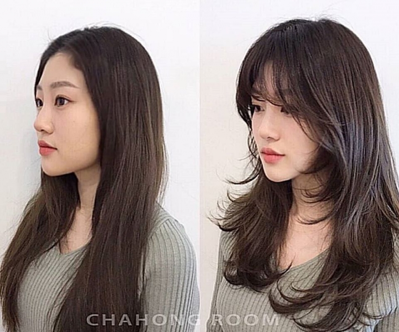 另外也建議再搭配外翻的長瀏海,可以延伸臉部線條、讓圓圓的臉可以看起來長一點,也會比較顯瘦!