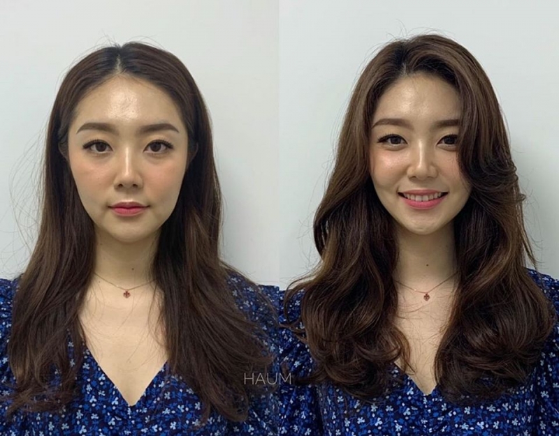 另外這位小姐姐額頭雖然不高、但是很寬, 跟右邊一樣做出蓬鬆感之後,瀏海就可以很好的發揮修飾效果,讓視覺焦點不會往額頭兩側集中、也就弱化的額頭過寬的問題!