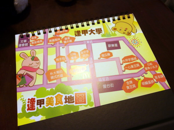 年曆也很實用,如果你剛好到逢甲大學附近,又不知道那裡有好吃的?只要翻翻這本年曆就行啦!一心臭豆腐、大甲芋頭城、雞婆鹽水雞……等等,看了就令人流口水。