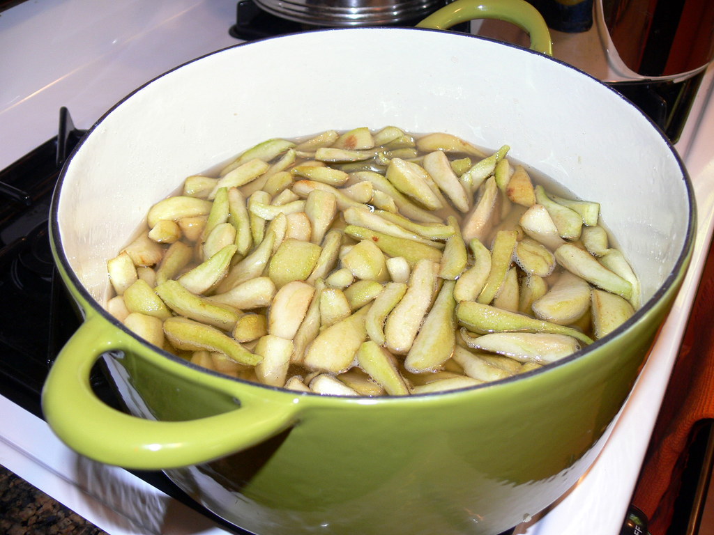 作法:將水梨去皮、去籽、切塊後,果皮跟果肉放入碗中,加入冰糖跟適量的水,在電鍋外鍋放兩杯水,電鍋跳起即可。飲用時先將果皮拿出,果肉可一併食用。
