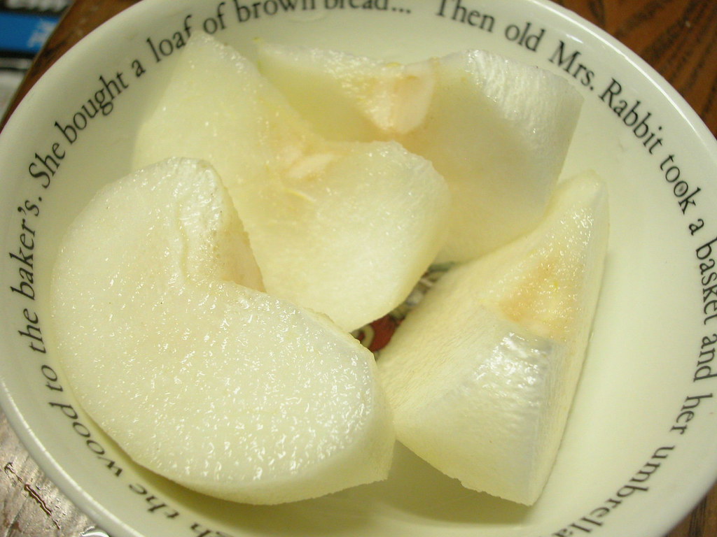 小小提醒一下,梨子採收後都會用冷藏保存,因此若是摸起來表皮乾燥又偏軟,就表示放在室溫下有一段時間了,可能比較不新鮮。