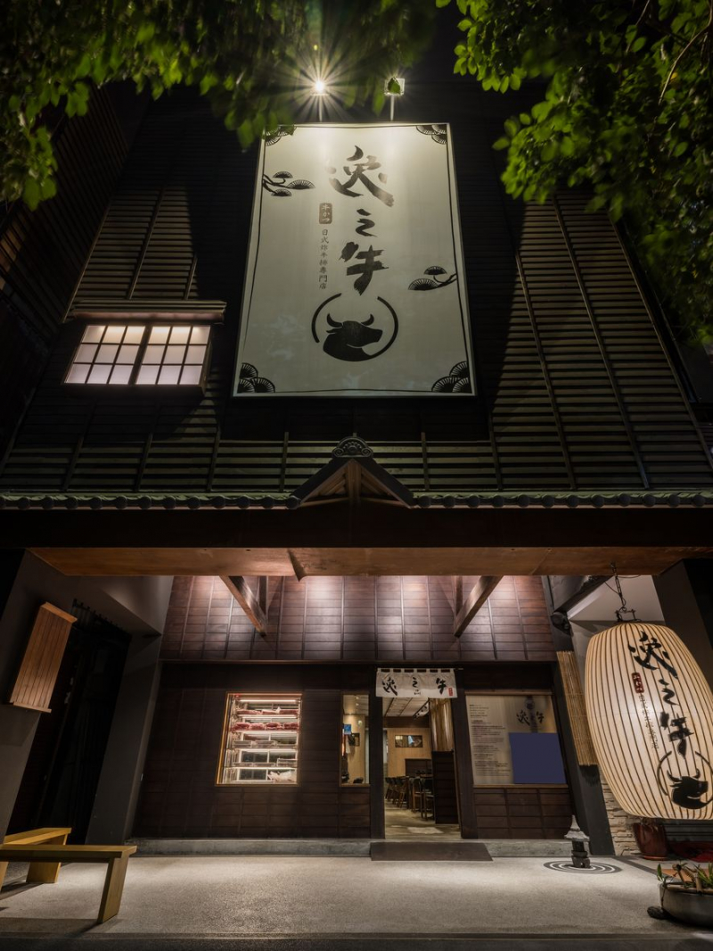 作為新興的餐飲品牌,業主期望為台灣飲食環境呈上更有機健康的餐點,便將期待化為佐料,調入新鮮肉品及無毒食材,製成一道道佳餚。不過好的料理也需要適合的器皿裝乘,猶如空間美學之於友善理念,因此弄木團隊以餐飲主題為索引,運用現代風格詮釋日式古樸風味,屋舍外觀採用木建材重構,縱橫的線面分佈堆砌出雙層立面;針對進入房屋前的過渡地帶,設計師以古桁架構造還原挑高門面,留予訪客停駐喘息,接受門庭所餽贈的見面美景。