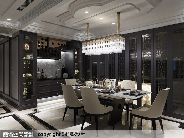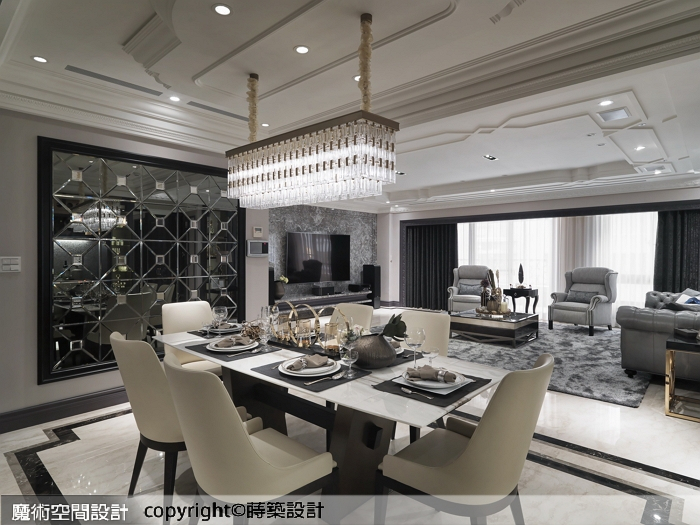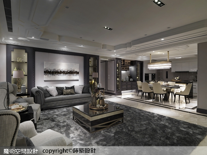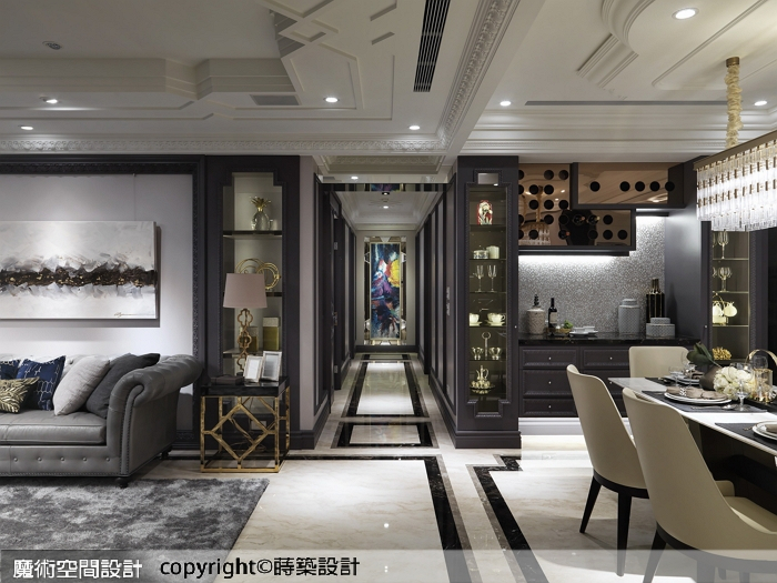 1.蒔築設計以古典內涵鋪排豪宅底蘊,內斂色調引領沉穩優雅,讓闊綽的空間感自我闡述磅礡氣勢。