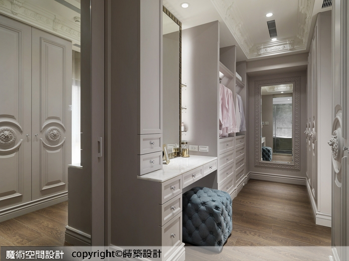 ▲主臥更衣室媲美高級精品店,水晶把手、立體浮雕,復刻連綿不盡的古典風華。