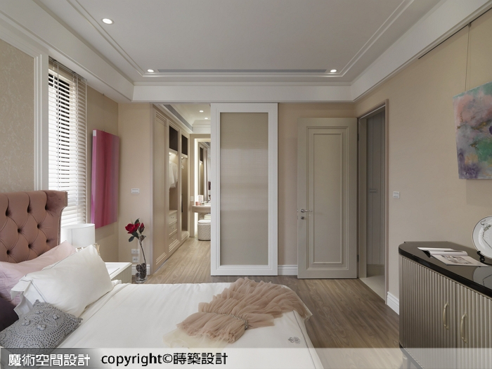 6.主臥另一側拉門內區塊,規劃為精美更衣室,梳妝及主浴動線均含蓋其中,美觀又減少浪費走道。