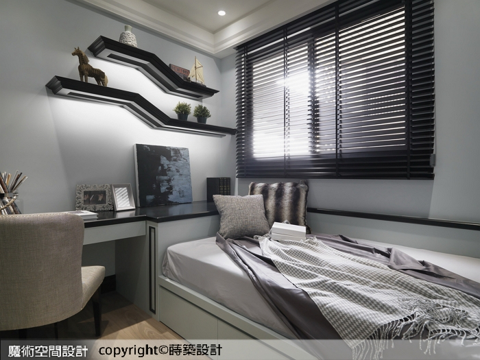 ▲次臥B採用臥榻形式取代傳統床架 ,讓書桌機能更為完整,發揮小而精巧的實用性。