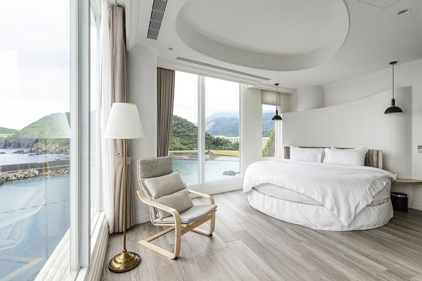 3種房型包括面對豆腐岬房型,靠蘇澳國際商港房型以及兩種景觀都可見、位居中間的海景房型,不論是休憩或是沐浴時,海天一色近在眼前,尤其是面對豆腐岬,從房間內入眼即可見弧型、原始風貌侵蝕沈積、澎湃海浪沖擊的海岸岩石,好奢華的享受!