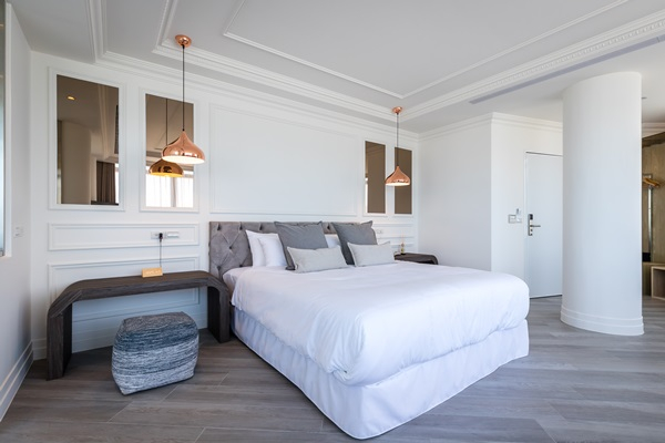 一踏進飯店,空間內部設計處處讓人感到舒心愉悅,整體為純白的基調,大廳採光明亮,四面迎光入室,局部飾以溫潤木質,陳設灰階沙發,在此用餐與熱情的主人閒話或是認識新朋友,閒適又愜意。為講求舒適自在,只規劃12個客房,每一層樓有3間房、全部為純白色系裝潢,臥室與浴室皆採大面窗景,特選頂級價值十萬元以上的King size大床、進口名牌等級的衛浴設備與歐舒丹備品。