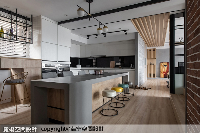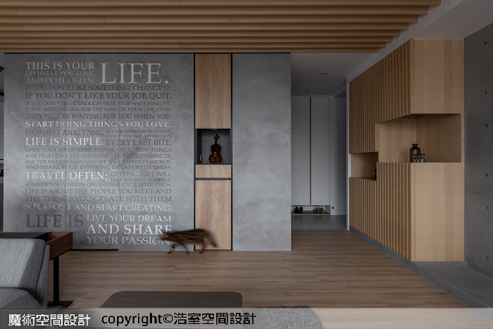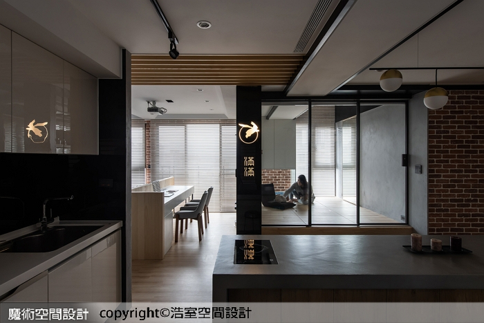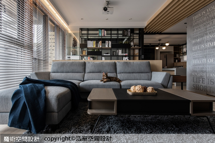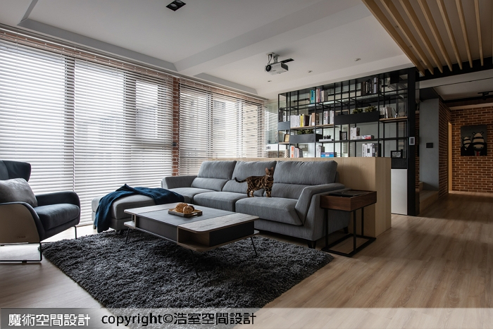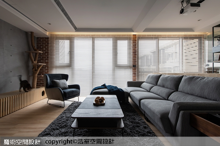 雖然屋主只有一位,但整體空間並不是專為一個人所打造,還要照顧到屋主所飼養的一隻貓與一隻兔子。如何讓三個物種在同一個環境下相處愉快且互不干擾,就成為浩室設計邱炫達總監思考的首要目標。此外本案室內坪數達45坪,對於一人一貓一兔來說,居住範圍可說相當寬廣,對於設計師來說,既要凸顯屋主的個性與滿足其對美學的要求,還要避免整體空間顯得大而無當,其實都再再考驗著邱炫達總監的設計實力。