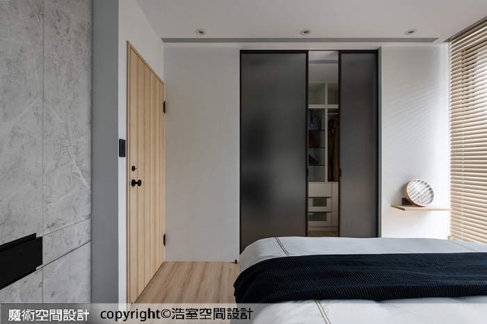 8.主臥室面積相當寬敞,還配置浴室及更衣室,可說完全媲美五星級飯店,室內風格延續公領域元素,簡潔大方卻不過份眩目,所有細節設計得恰到好處,讓人一進入房間時,身心就可盡情沉澱放鬆。更衣室能夠容納大量衣物、皮包配件、行李箱等物品,風格猶如精品店一般,達到美觀與實用兼具的目標。