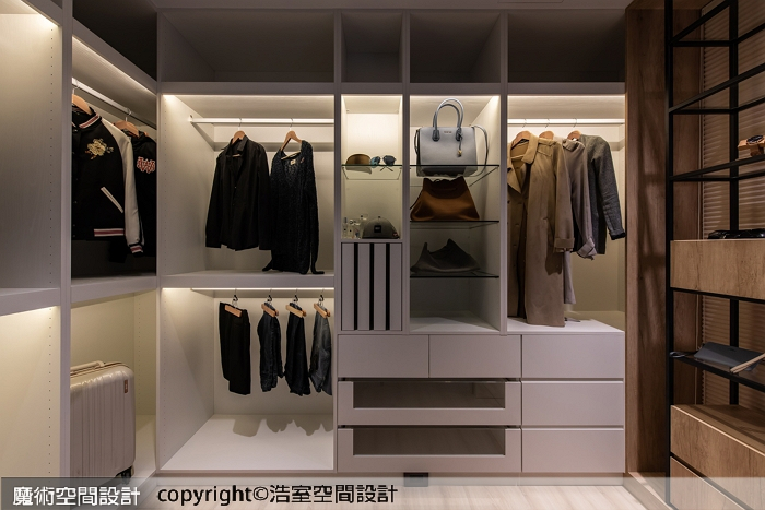 ▲主臥室內配置的更衣室能夠容納大量衣物、皮包配件、行李箱等物品,風格猶如精品店一般,達到美觀與實用兼具的目標。