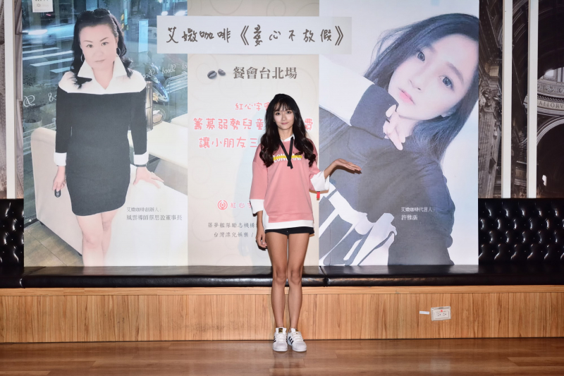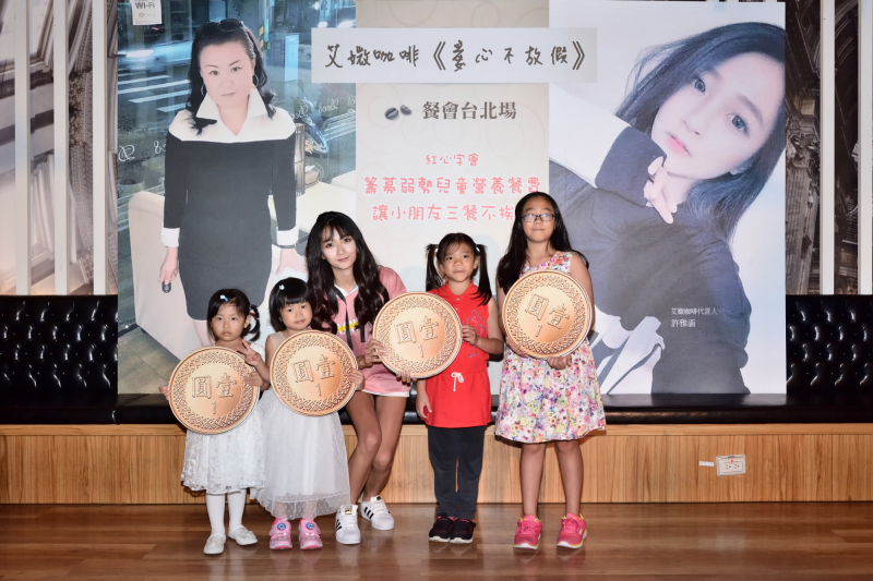 許雅涵及蜻蜓宋翊彰的愛心行動,也吸引到艾媺咖啡創辦人蔡思盈的響應,除了邀請他們代言愛媺咖啡登入北京展開全球加盟活動之外,董事長蔡思盈女士也分享自己從自閉兒走向如今擁有千人團隊「築夢鑑隊勵志機構」的心路歷程,現場還捐出自傳版稅捐給紅心字會幫助弱勢小朋友募集餐費,讓愛心不放暑假。