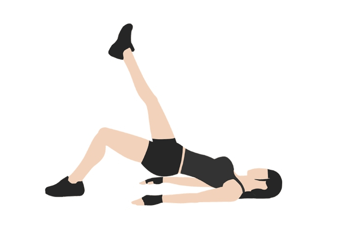 平躺後雙腳腳掌著地,兩腳可以稍微分開,意念集中在臀部,以臀部發力向上挺起,抬至最高點可以停留一兩秒,放下臀部時盡量不著地,左右各做20下。