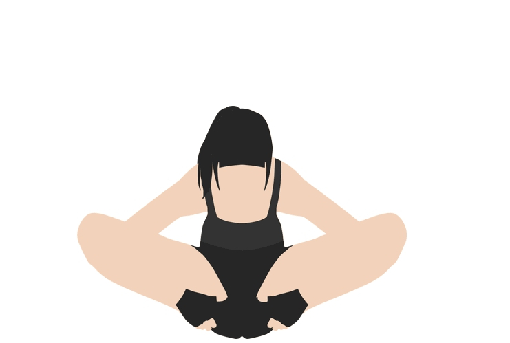 膝蓋相對呈現坐姿,雙手抱頭向下壓,維持15~30秒後起身,重複3round。這個動作可以改善大腿內側肌群緊繃導致的小腿脛骨外翻,進一步矯正XO型腿。