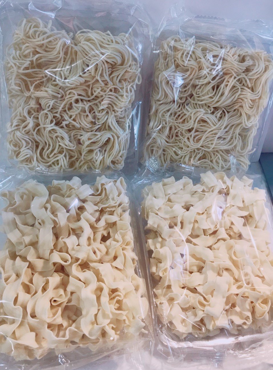 椒麻口味麵條是手工細麵與刀削麵的組合,麵條分別各兩包