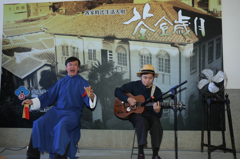 昨天記者會一開場,由本劇客語老師、客家竹板快書專家張春泉老師,與客家金曲之光黃子軒聯手演出,向姜阿新先生致敬。