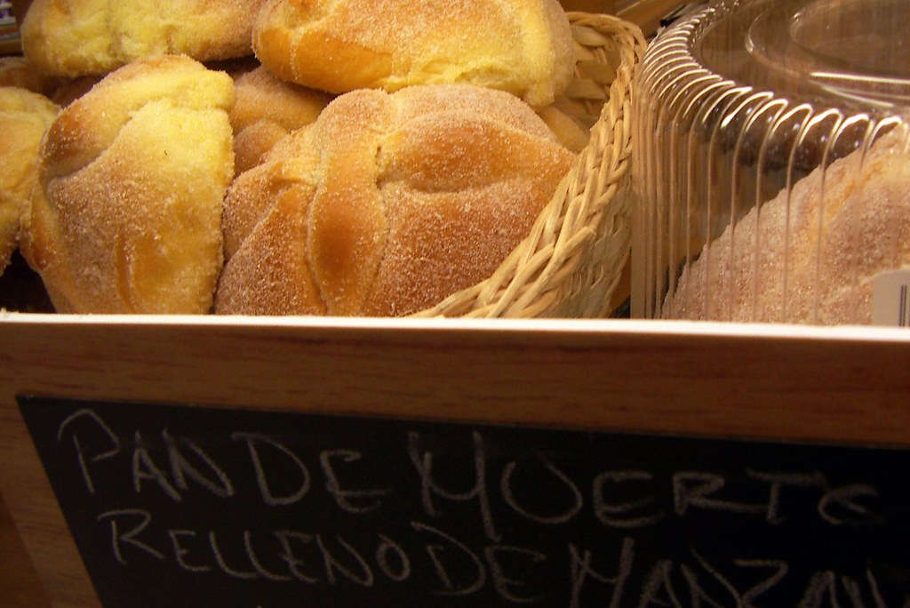 死者麵包(pan de muerto):一種上頭有茴香種子和骨頭形狀的麵團裝飾的甜麵包(骨頭有時會排成象徵生命循環的圓形),撒上大量糖霜,吃起來甜滋滋。