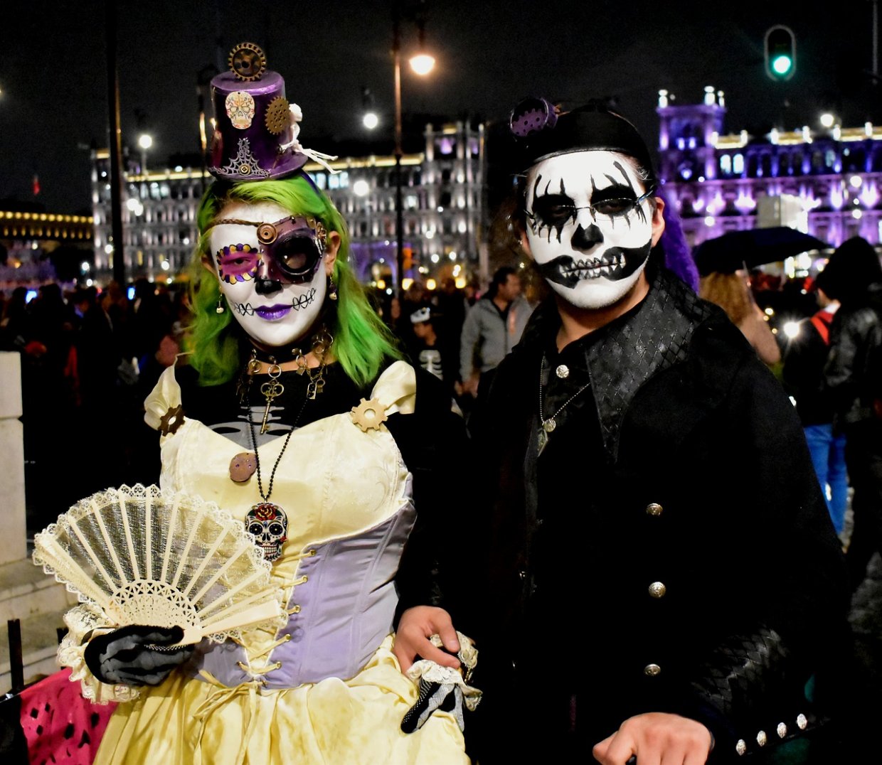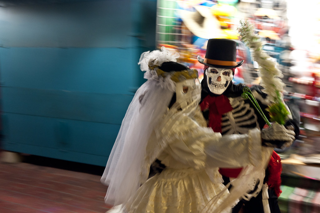 亡靈節是墨西哥最盛大的節慶,骷髏造型也是最盛行的裝扮。大家將臉畫成骷髏頭,穿上華麗服裝模仿骷髏女Catrina,搭配上各種會發出聲響的物品,炒熱氣氛順便吵醒死人,呼喚各界生命一同狂歡過節。