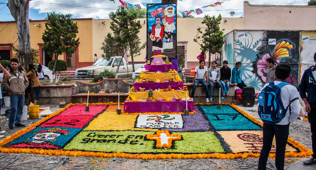 從亡靈節的活動中,就有迎接亡靈回到人間家中擺放死者照片的祭壇~祭壇擺滿了水和食物等各種獻禮供亡靈在長途跋涉後能解渴充飢,也可能有小玩具給小孩的亡靈。而萬壽菊是主要的裝飾品,一路從靈壇撒到墓園,指引亡靈回到安息地,而樹脂做的香會在焚燒後帶著家人的祝禱,也會淨化靈壇四周。